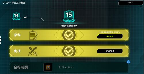 遊戯王や遊戯王マスターデュエルに関する試験『マスターデュエル検定』に11~15段が追加され全ての試験をこなし15段まで到達しました。 マスターデュエル検定の内容と報酬に自分が実技で使用したデッキをまとめています。