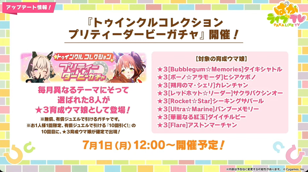 『トゥインクルコレクションプリティーダービーガチャ』開催!